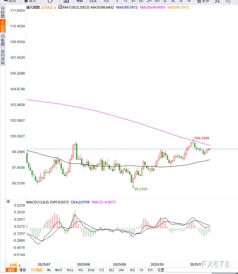 从DXY日线结构来看,美元指数当前处于低位震荡修复阶段,短期反弹动能温和但尚未形成趋势逆转。
